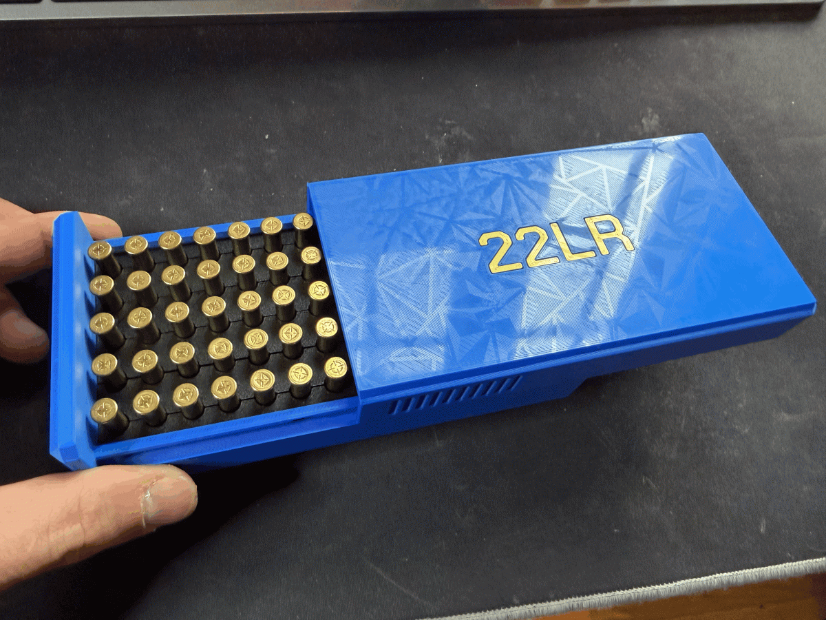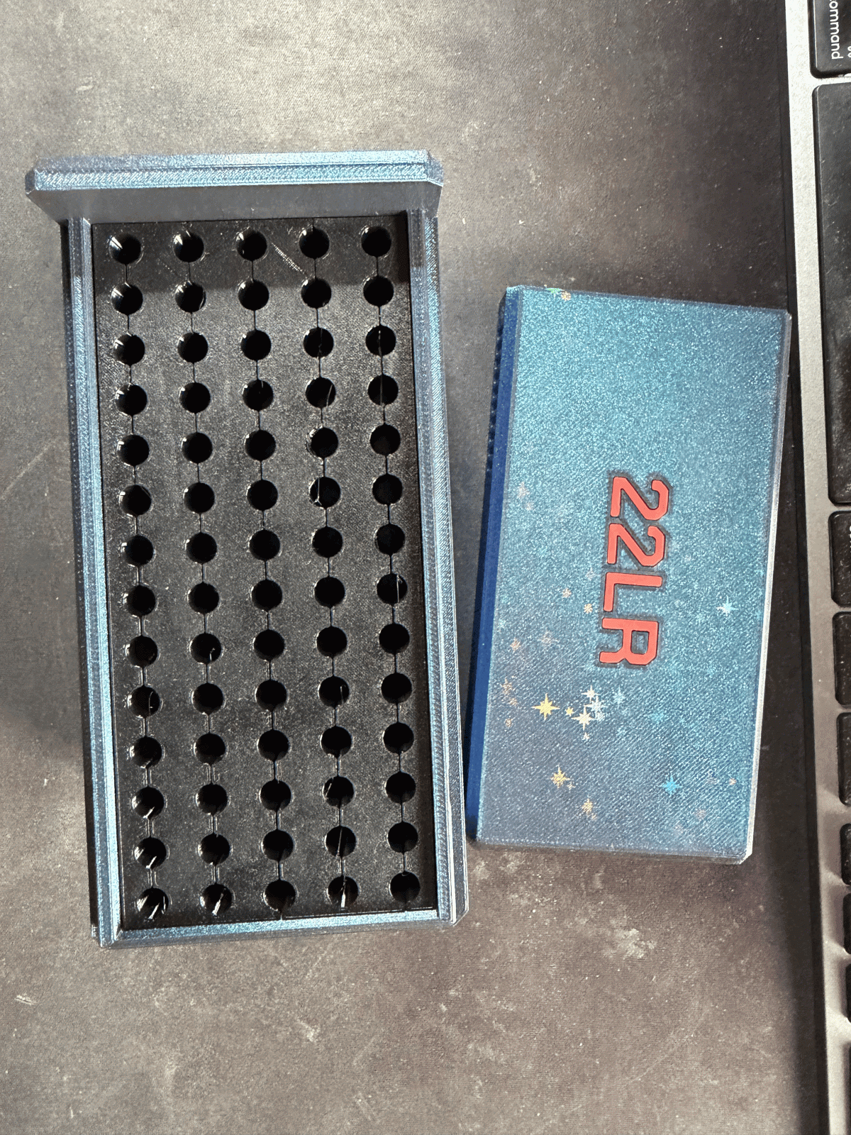 Boîte 22lr Spéciale Compétition 50mètres ( 70 emplacements) couleur Starlit Flow et finition étoilée , vue de face