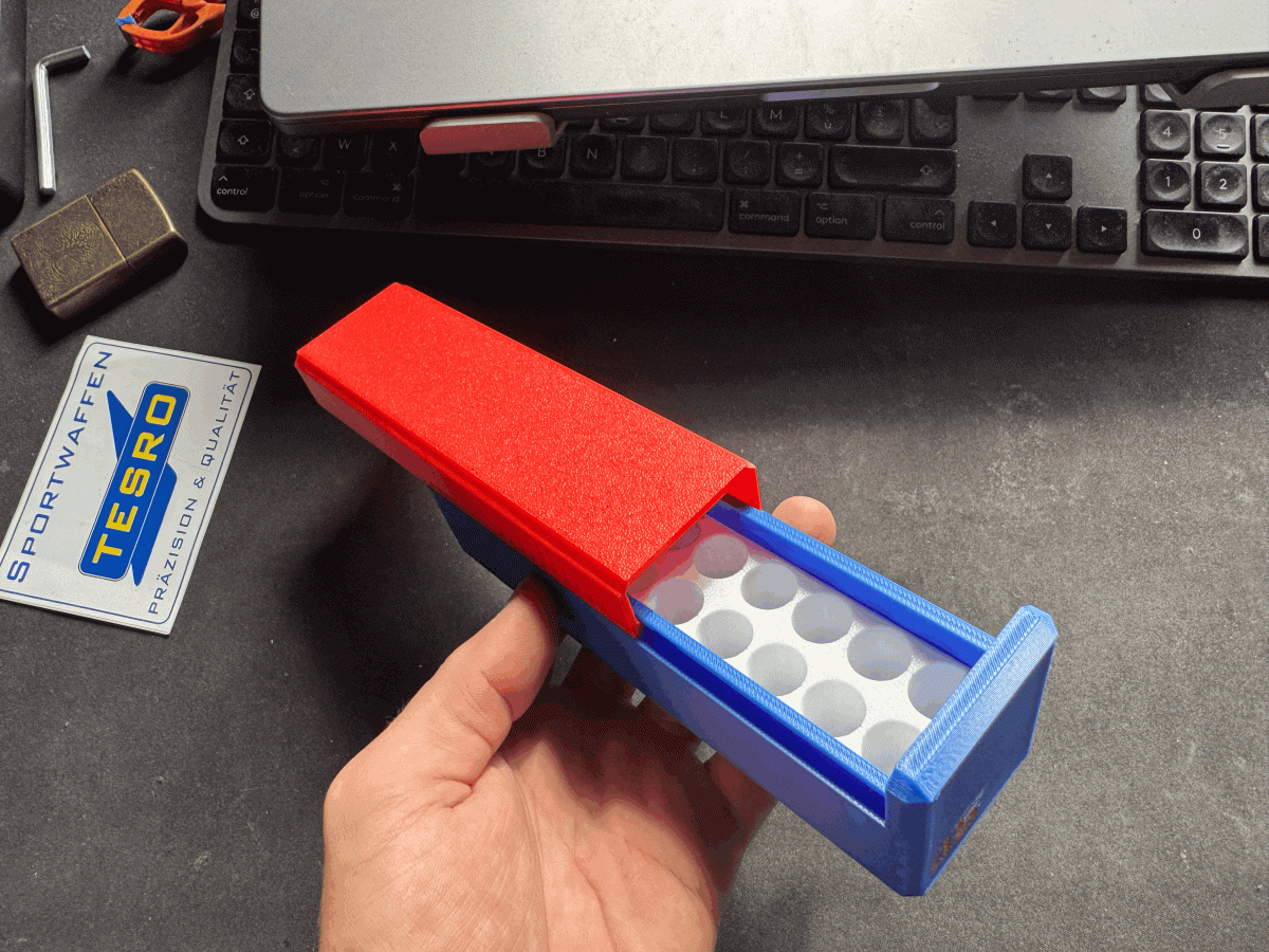 Boîte 22lr Spéciale Compétition 25 mètres ( 70 emplacements) couleur Bleu Klein et finition Diamant