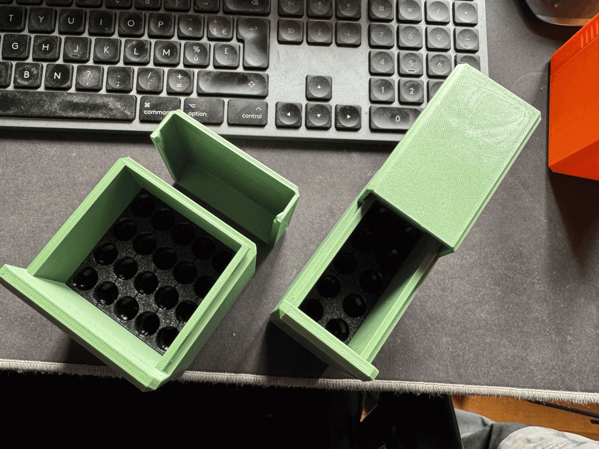 Boîte 22lr Spéciale Compétition 25 mètres ( 70 emplacements) couleur Bleu Klein et finition Diamant, vue de face